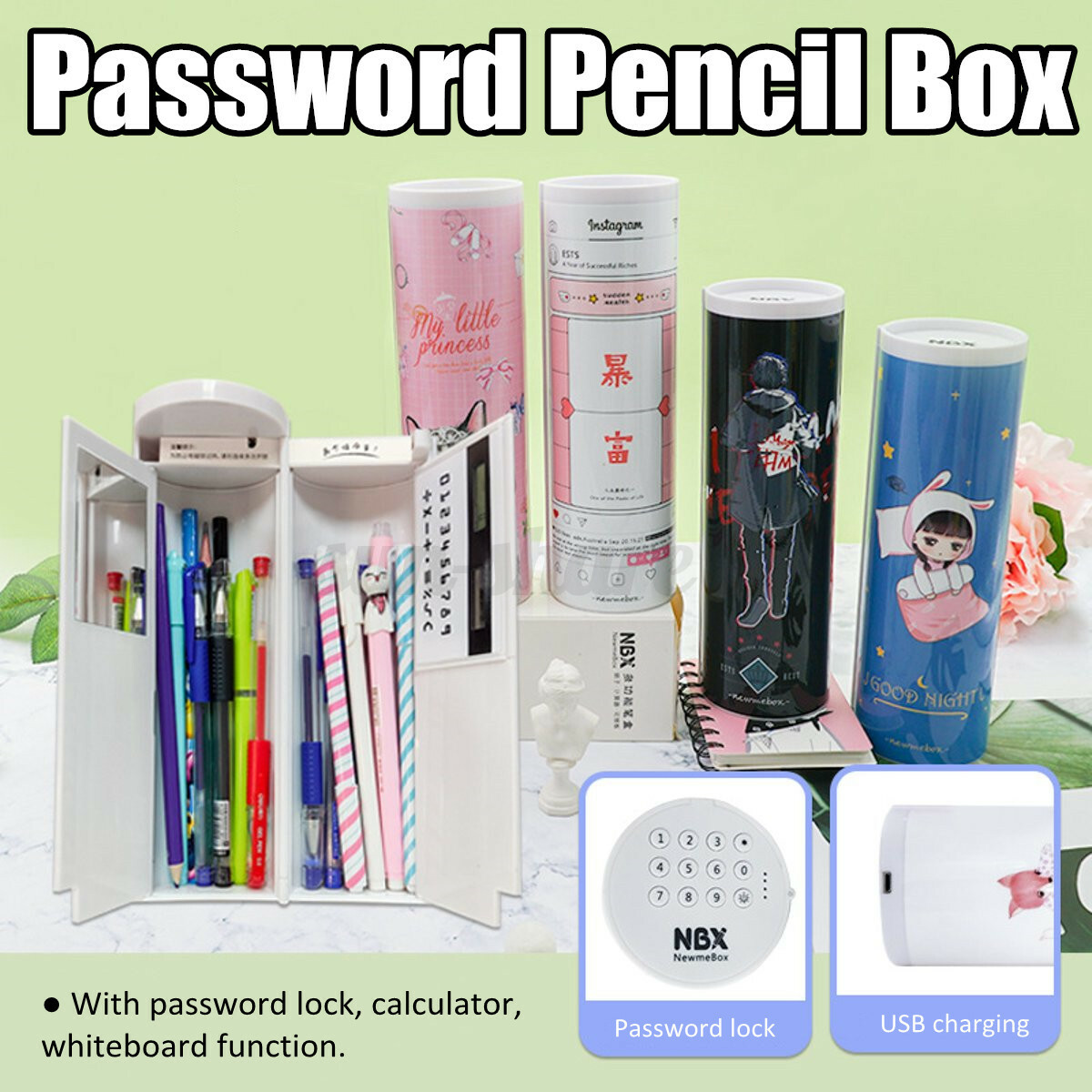 Nbx Combination Password Lock Pencil Box Office School Supplies Girl Kawaii Pencil Case Multifunctional Large Makeup Stationery Shopee Indonesia Girl Drawing With Umbrella Ipad Pro Apple Pencil Zeichnen
