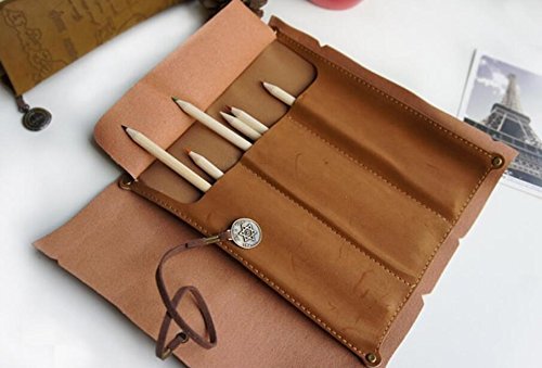 Retro Genuine Leather Pencil Rollup Case Pen Cord Roll Pouch Stationary Organizer Case Pouch Carrier Cosmetic Pouch Card Pocket With Wrap String Best For Writer Artists And Students Hgj03 Us Brown Wantitall Drawings With Texts Ipad Pencil Tips And Tricks